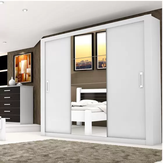 Guarda Roupa Casal com Espelho 3 Portas de Correr Lara